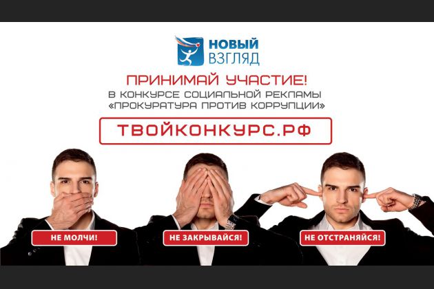 "Новый Взгляд" - это крупнейший молодежный проект в области социальной рекламы. Конкурс предоставляет возможность молодым людям в возрасте от 14 до 30 лет выразить свое отношение к наиболее значимым социальным проблемам современного общества, показать способы и пути их решения. Соорганизаторами конкурса выступают Министерство природных ресурсов и экологии Российской Федерации и Генеральная прокуратура Российской Федерации.