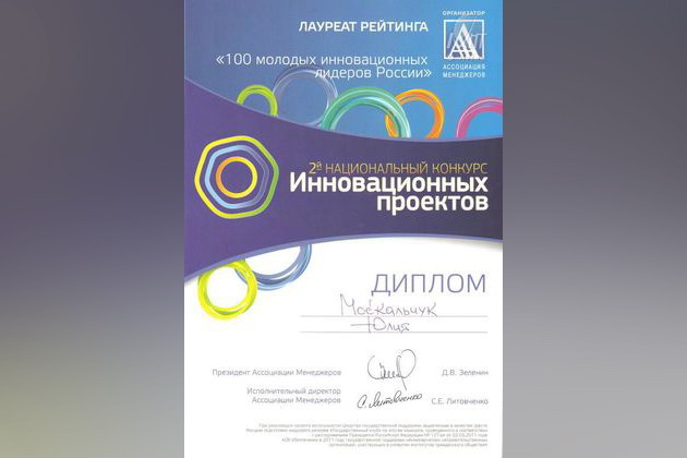 Завершилось подведение итогов 2-го Национального конкурса инновационных проектов. Организатором конкурса выступило Молодежное движение Ассоциации Менеджеров. Мероприятие осуществлялось в рамках грантовой поддержки по Распоряжению Президента РФ от 08 мая 2010 года № 300 рп «Об обеспечении в 2010 году государственной поддержки некоммерческих неправительственных организаций, участвующих в развитии институтов гражданского общества».