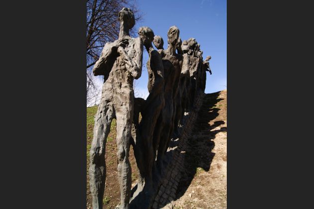 Фото 2.Минск, Беларусь. Скульптурная композиция Последний путь, представляет собой группу обреченных, спускающихся на дно ямы. Мемориал Яма.