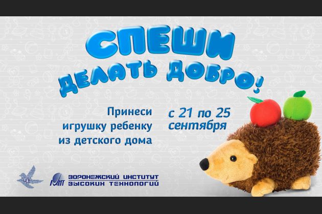 Дорогие друзья, с 21 по 25 сентября в Воронежском Институте Высоких Технологий будет проходить благотворительная акция "Спеши делать добро".