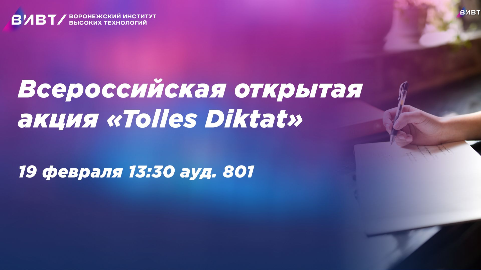 Анонсы ВИВТ