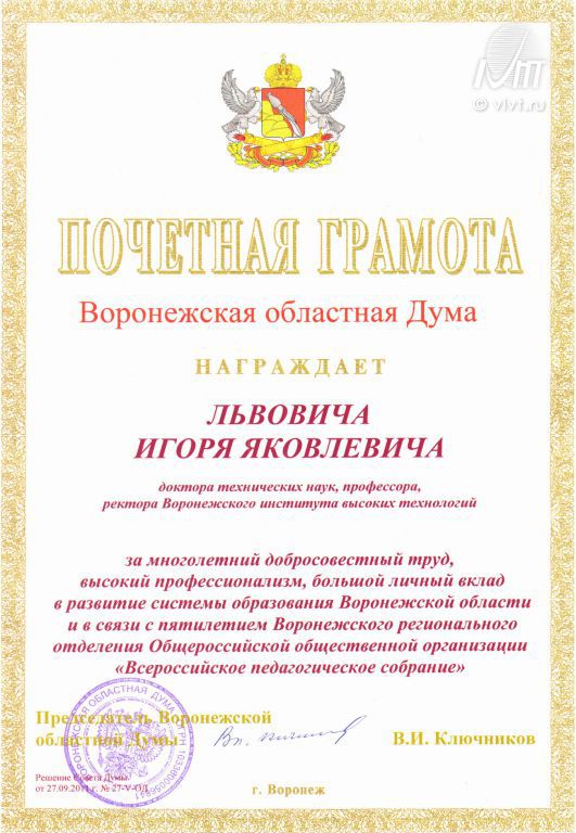 На заседании ученого совета, который состоялся в Воронежском институте высоких технологий 24.11.2011г., подвели итоги работы в уходящем году.