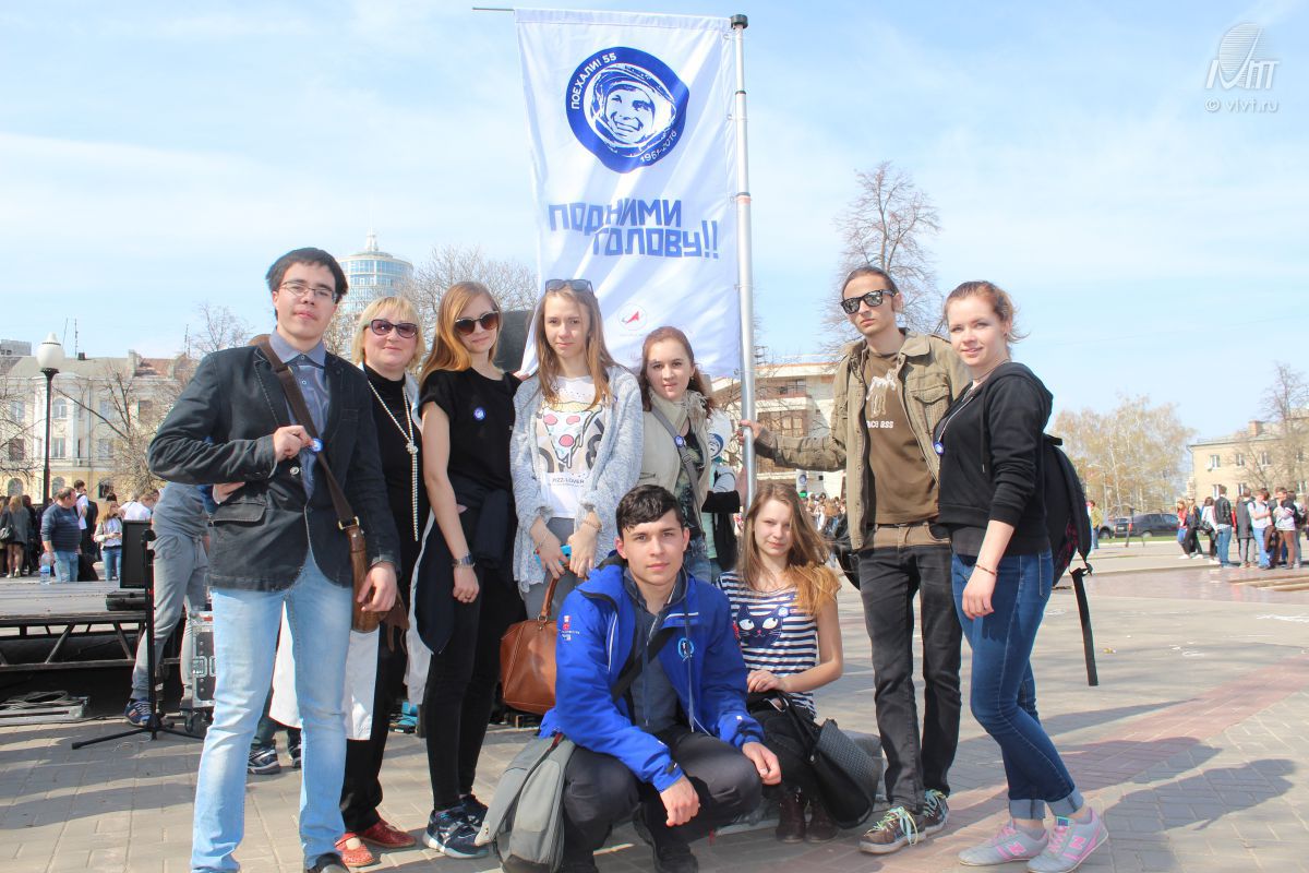 Студенты ВИВТ приняли участие в общероссийской акции «Подними голову», посвященной первому человеку, покорившему космос. 12 апреля в 55-ю годовщину первого полета в космос в Воронеже, как и во многих других городах страны, прошла акция «Подними голову», посвященная первому человеку, покорившему космос.